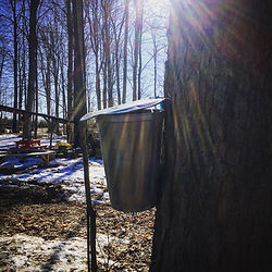 Maple sap marks the first harvest of the year on our small family farm. Val and Brent, farmer-owners of Heartwood Farm & Cidery, have been sharing the magic of maple syrup season with friends and family for years. Heartwood’s small-scale maple syrup operation combines modern techniques of sap collection and processing with the charm of a small, wood-fired, open-air sugar-shack, and the homespun delights of personal stories shared by the maple syrup team. In keeping with Heartwood's unique "up close and personal" approach to sharing our farm experiences, we offer Secrets of the Sugarbush as a 90-minute, intimate, small-group (max 16) immersion into the art and science of sap collection and maple syrup-making. We can't guarantee that the sap will be running when you visit, but the sugar shack will be in full swing, and we look forward to bringing you behind the scenes to experience all aspects of our operation. Come to Heartwood to revel in the tradition of transforming this gift from the trees into a sweet taste of spring. - Let Val and Brent welcome you and guide you on a sugarbush walking tour, sharing their hands-on knowledge of the whole, fascinating process of tapping, collecting, and processing maple syrup. - Gather around the wood-fired evaporator in our open-air sugar shack to learn all about the art and science of this craft. - Taste the progression of sap to syrup right from the evaporator and enjoy a mug of “sweet maple tea”. - Explore, relax and “forest bathe” among the maples. - Visit our farm store and get an introduction to our artisanal ciders -- featuring a sweet touch of maple syrup -- crafted here in our on-farm cidery. Tickets must be purchased in advance - book your spot below! We will be opening up dates for this experience as the maple sap season unfolds -- reach out to val@heartwoodfarm.ca if you are interested in bringing a group on a date that's not yet listed. No dogs please (farm animals find even the cutest ones stressful!) Includes a short walk through the woods. Come prepared for slush and mud season!